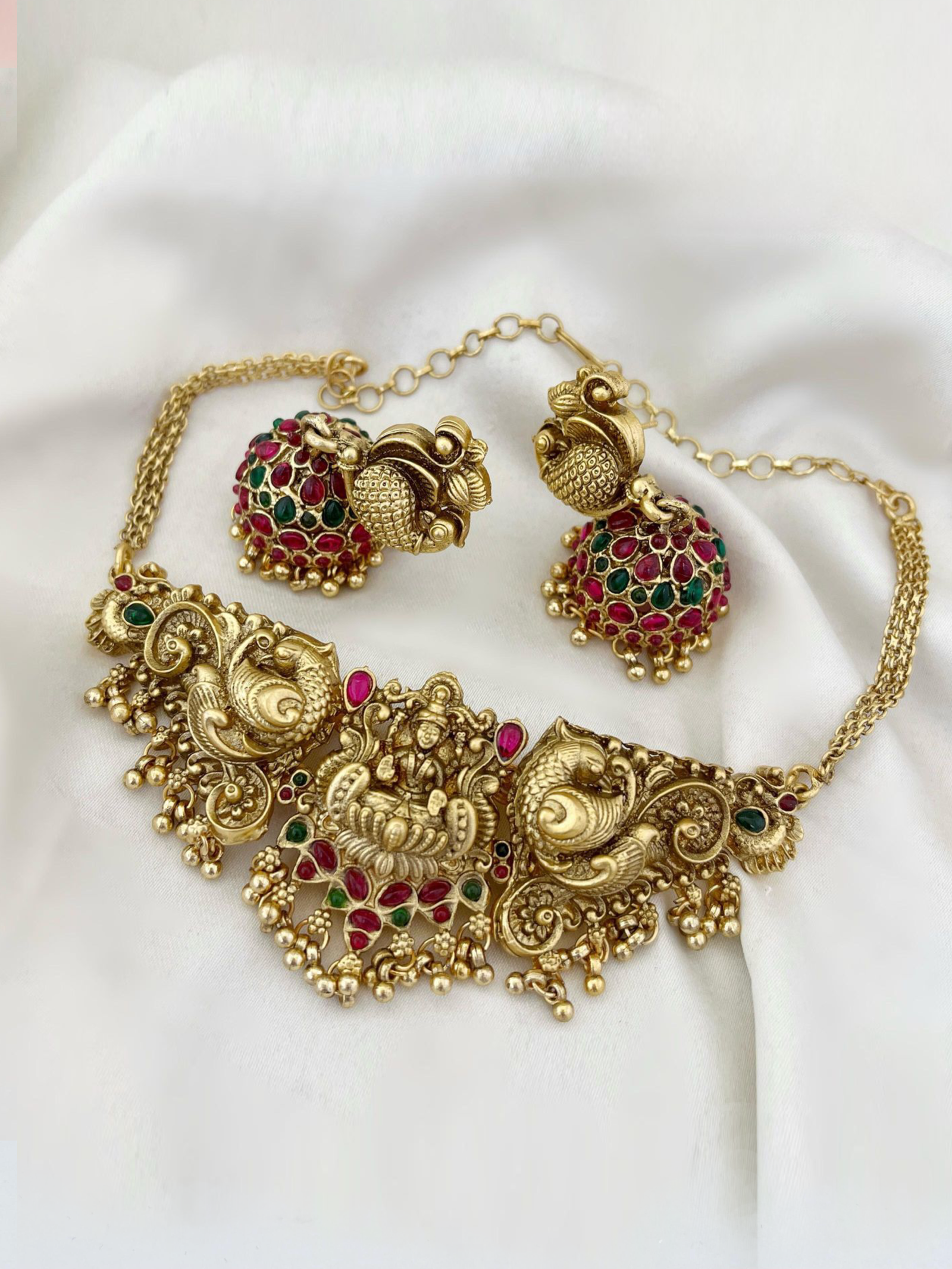 LAKSHMI PEACOCK CHOKER WITH PEARL DROPS SET